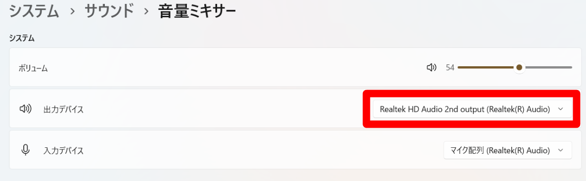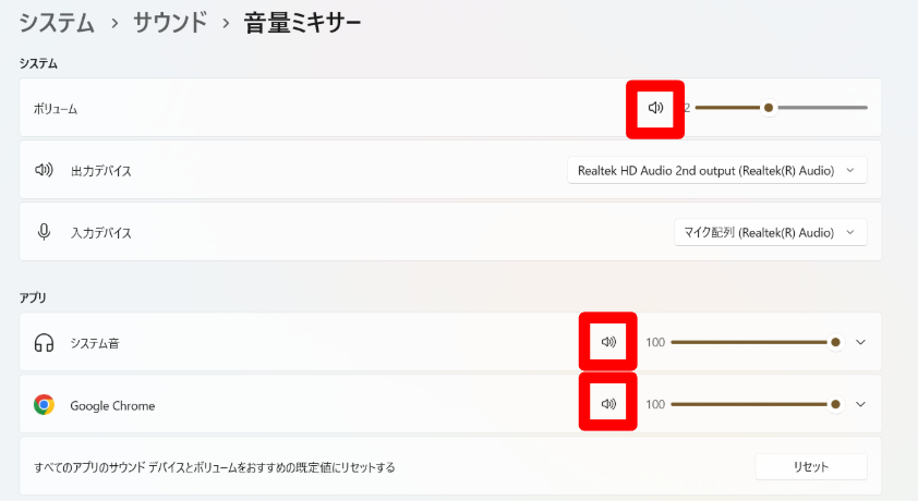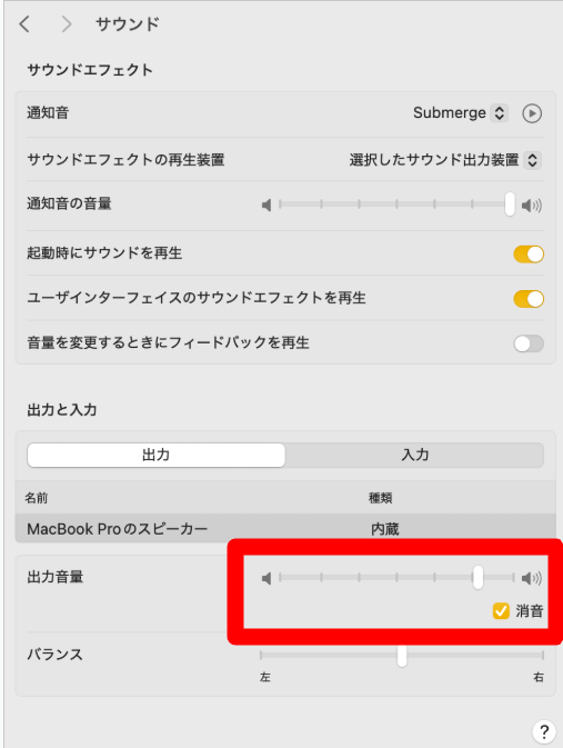 ・「出力音量(しゅつりょくおんりょう)」がちいさく設定されていないか