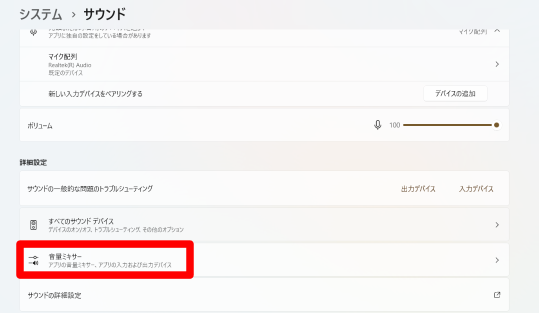 「音量ミキサー(おんりょうミキサー)」を開こう