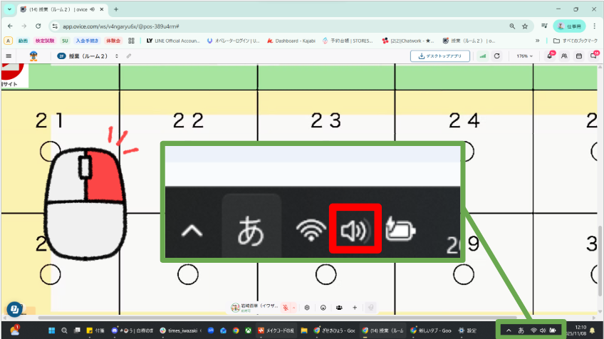 ※もし、ヘッドフォンやイヤフォンをつかってるばあいは、ちゃんとパソコンにささっているかかくにんしてね!