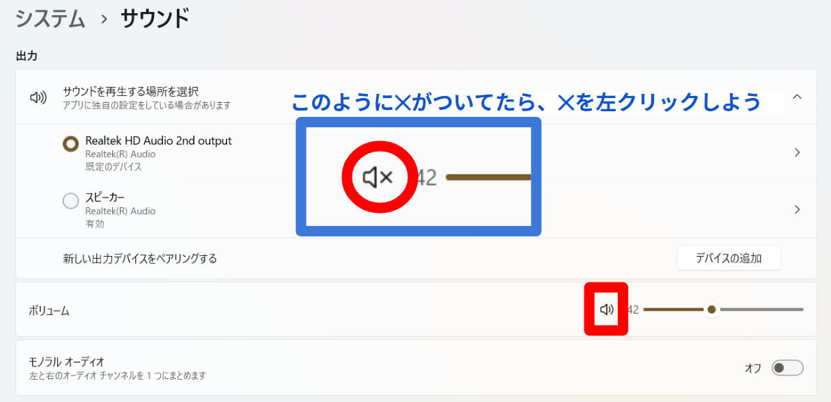 いまえらんでいるスピーカーとは、べつのものをクリック